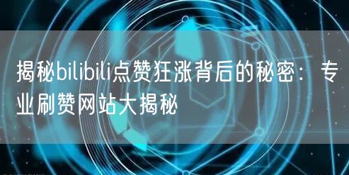 揭秘bilibili点赞狂涨背后的秘密:专业刷赞网站大揭秘