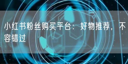 小红书粉丝购买平台:好物推荐,不容错过