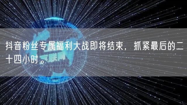 亲爱的抖音粉丝们,最后的二十四小时已经到来。抓紧参与这场福利大战,赢取属于你的奖励。让我们一起倒计时,共同见证这个激动人心的时刻!