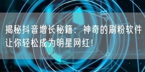 揭秘抖音增长秘籍:神奇的刷粉软件让你轻松成为明星网红!