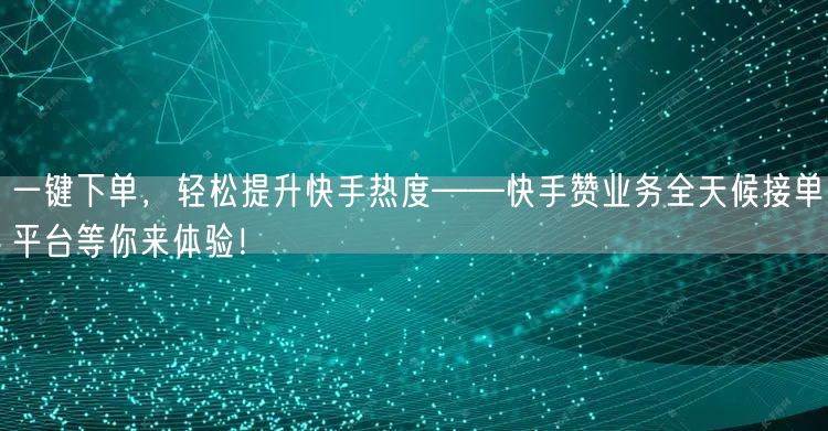 一键下单,轻松提升快手热度——快手赞业务全天候接单平台等你来体验!