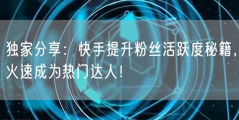 独家分享:快手提升粉丝活跃度秘籍,火速成为热门达人!